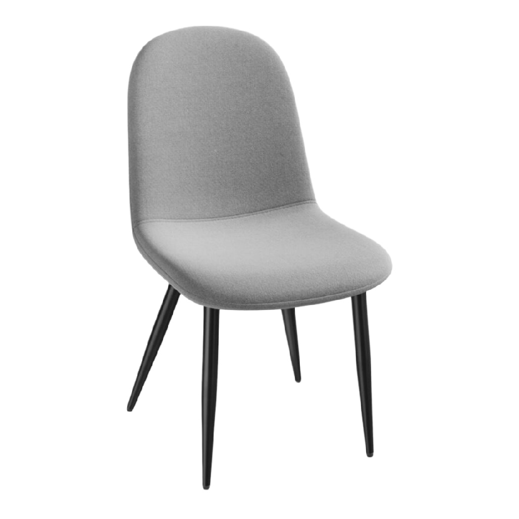 Chaise moderne en tissu gris avec pieds noirs élégants.